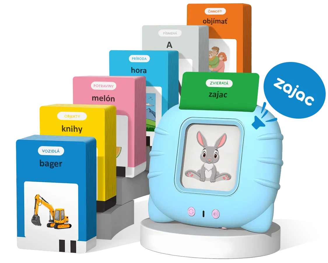 Vďaka hravým kartičkám a rozprávaniu si vaše dieťa prirodzene vytvára spojenia medzi slovami a predmetmi – a to všetko bez nátlaku, s radosťou a zvedavosťou.